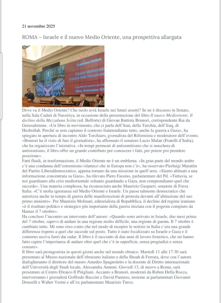 Ansa 06-10-2025 17:55 [ Politica ] Dopo due anni di guerra si delinea il nuovo Medioriente Brunori delinea il declino della mezzaluna sciita (ANSA) –