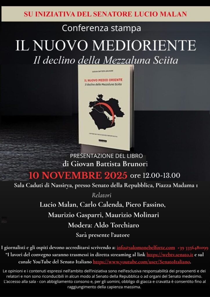 “Il Nuovo Medio Oriente” il declino della Mezzaluna Sciita”, Belforte editori, di Giovan Battista Brunori, Responsabile sede Rai Medioriente, delinea un complesso mosaico i cui tasselli meritano di essere ricomposti in modo completo, senza censure: racconta due anni di guerra vissuti sul campo, con reportage e immagini visibili attraverso codici qr.